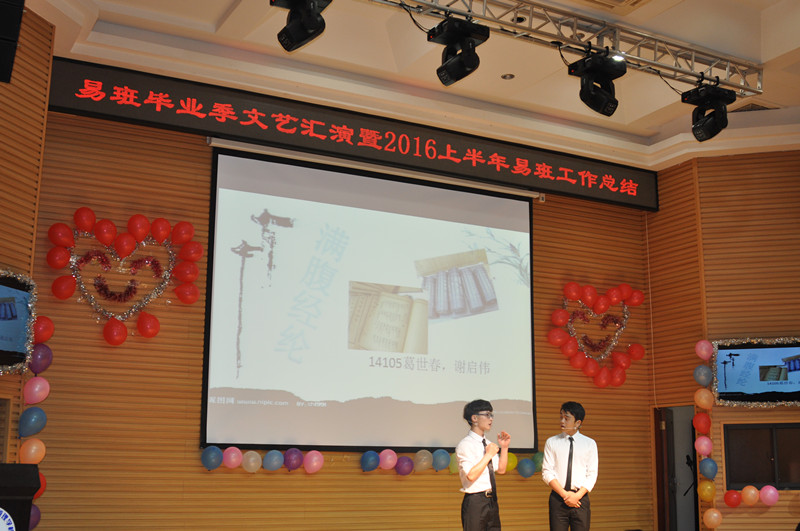 又到了一年一度的毕业季,为了欢送应届毕业生们,我校易班于6月14日下午第七第八节课在报告厅精心策划了一场毕业文艺汇演暨2016年上半年易班工作总结会。沈瑞华校长、沈忠贤书记、曹刚校长、德育处张柳莺老师、团委处钟国华老师均有到场欣赏演出。