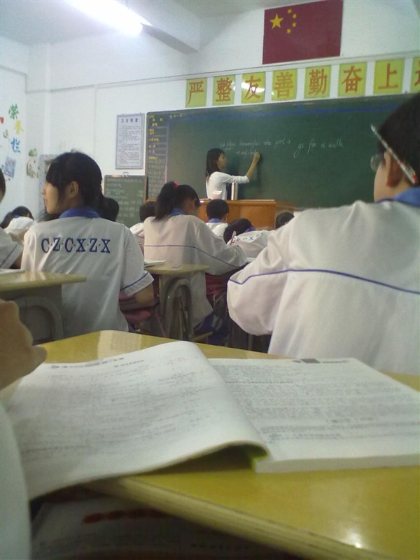 这是我们初三的班主任,也是我们的英语老师,她正在给我们讲课,这个老师对我们特别好,每天相处特别轻松自然,和我们就是朋友一样,而且对我们的学习也特别关心在意,为了中考,她特地延长了她的下班时间来给我们补课,每天都在为我们忙碌,我们都非常喜欢她