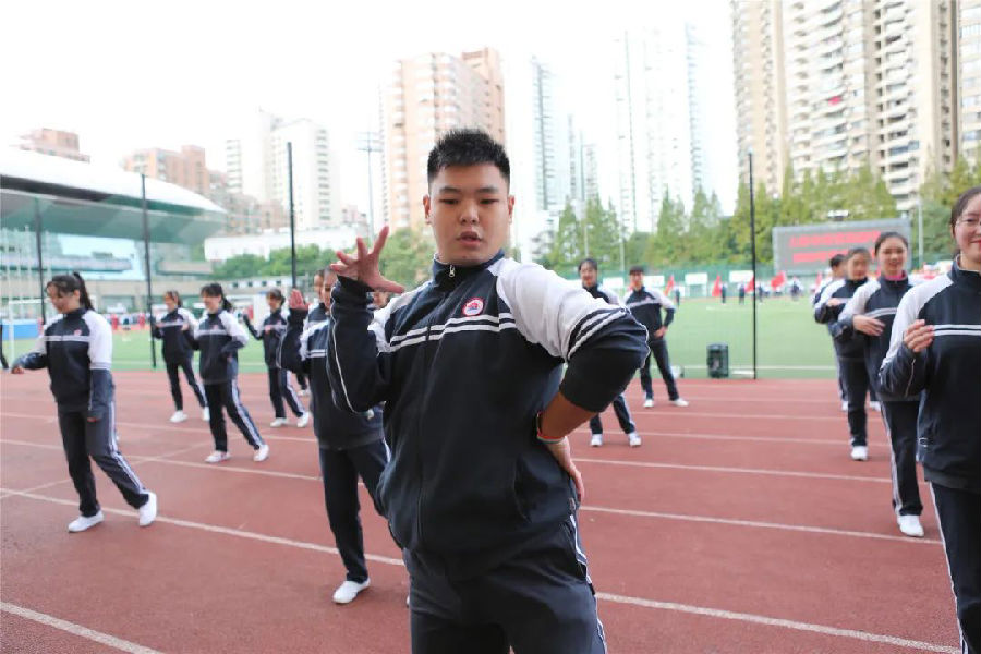 热身表演开始。由顾月仙老师带领的Top Girls社团为大家带来了精彩的啦啦操舞蹈,这个社团每年都会参加各级各类比赛,可谓战果累累;空手道表演也是每年运动会上的保留节目,该社团在居剑锋老师的带领下一直人丁兴旺,参加比赛更是战果辉煌;“和乐”是商贸旅游学校的校训,为此,王建国、戴杰老师编排了校园律动操《你笑起来真好看》,来自浦东校区20级的60位同学个个笑容洋溢,激情四射,同学们真挚友好灿烂的微笑是学校的一张靓丽名片。