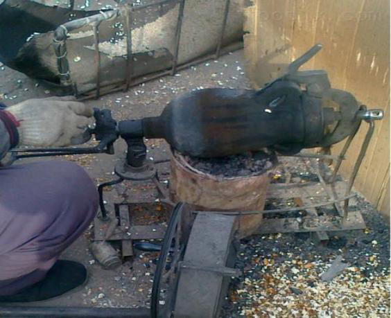 老式爆米花机由机头螺杆、大弯头、小弯头、机盖、加力管/杆、开口销和摇手组成,另外为了能够架于炉火之上,还需要前后两个支架。