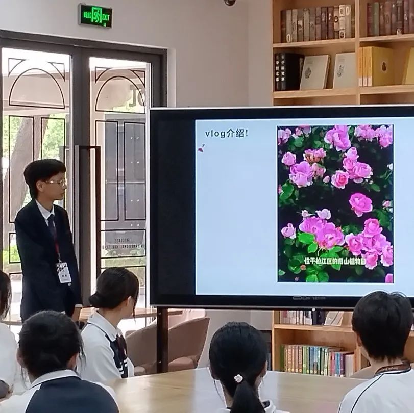本次活动由21旅管2班的赵佳乐和王一帆同学主持。赵佳乐同学首先介绍了此次研学活动的背景,安排了小组代表分别介绍各自小组的作品:李文韬同学大致介绍了上海辰山植物园的概况,并且在vlog当中别出心裁地用了小组同学画外配音的方法让我们有身临其境的感觉;王一帆同学重点介绍了上海辰山植物园的草地音乐节,不仅介绍了出席的嘉宾,还为我们展示了相关的视频,让在场所有的同学都沉浸在了音乐里;王程鑫同学带我们领略了珍奇植物——香荚兰的风采,了解他们的习性、分布区域以及其他特别之处,精彩的讲解引人入胜,令在座的各位都十分着迷。
