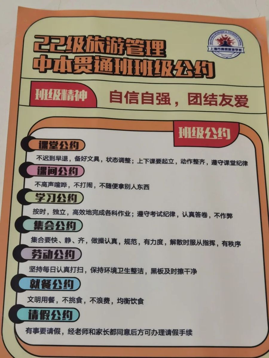 22旅游服务与管理1班和22酒店管理班荣获一等奖。班级文化彰显文旅融合特色。“产教融合,德技并修” ,“以文字记录心情,以脚步丈量世界”“每周一报,记录成长足迹”“温情一角,暖意浓浓”,班级常规管理遵循制度化、规范化的原则,以班主任为核心,形成强大的班级凝聚力与向心力。
