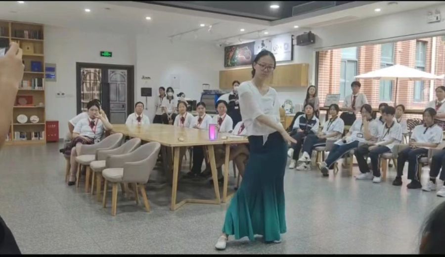 最后是李佩玲同学的傣族舞,傣族舞时而节奏快速,动作灵活跳跃伴随着多变悠扬婉转的傣族音乐使大家沉浸其中。