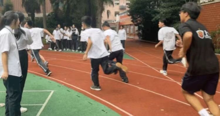比赛过程中同学们热血激昂,赛场边的同学们大声地加油助威着,是的运动赛场上充满着阳光与激情。