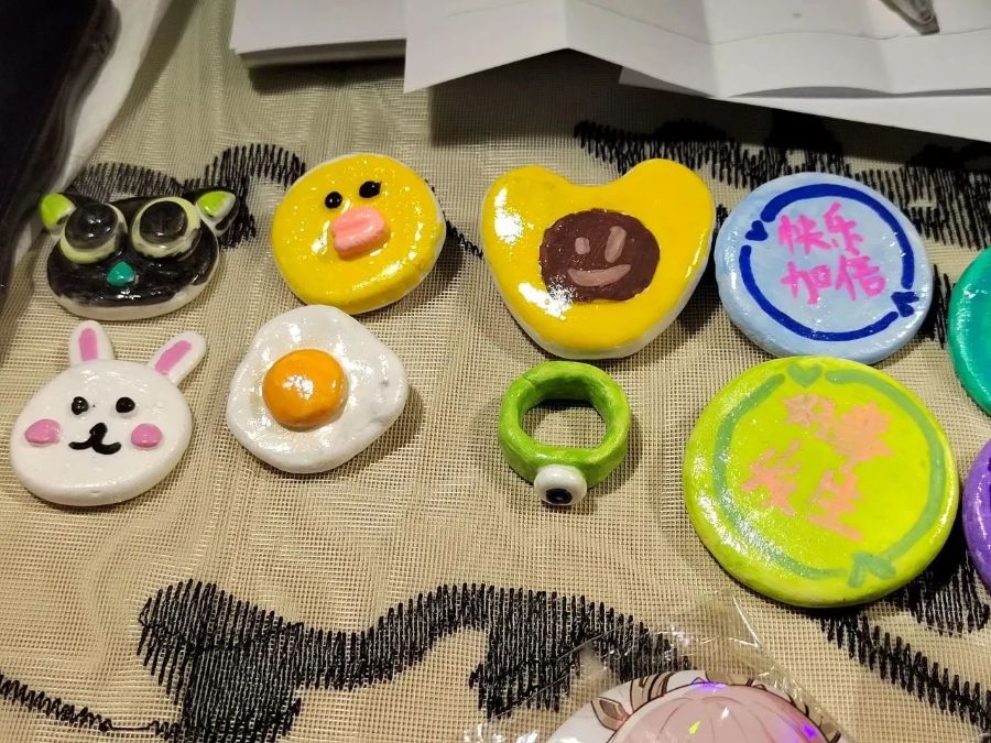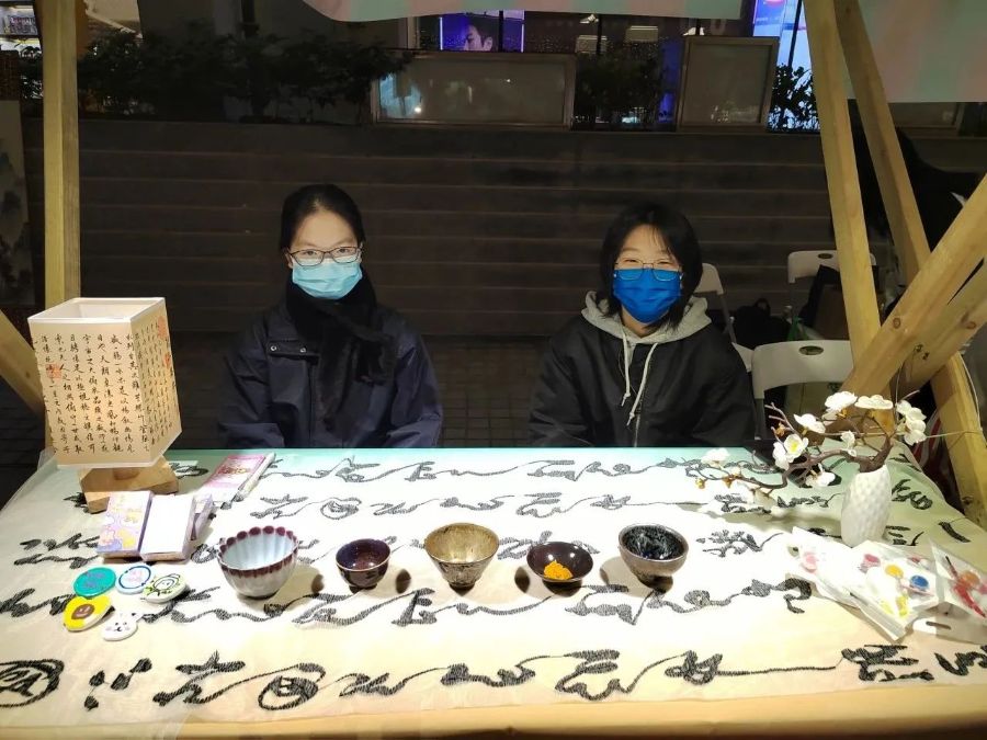 此次市集活动从选材到制作,从选品到进货,大家集思广益,三组社员各显神通。为使展台能达到吸引并留住客人的目的,社员们还在布展上下了一番功夫。国风场景的打造,营造了古风打卡的氛围,引得游客驻足拍照。