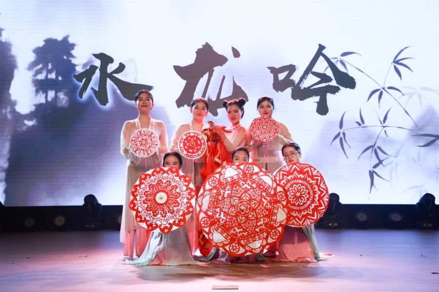 舞台上,社团原创作品“剪纸伞”融入舞蹈《水龙吟》,传统与现代的碰撞,让中华优秀传统文化焕发出新的生命力。