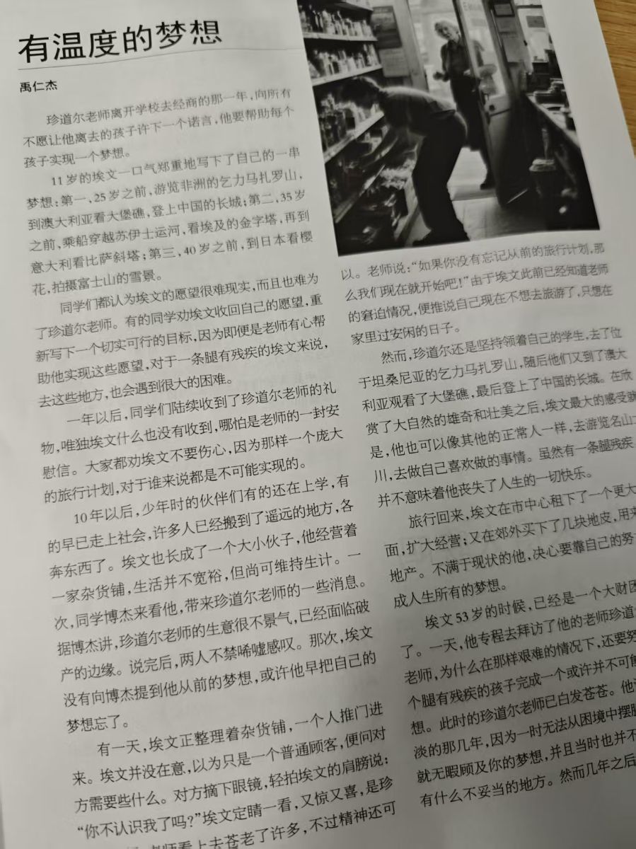 《有温度的梦想》讲述珍道尔老师助力残疾学生埃文实现梦想的故事,令人动容。珍道尔老师一诺千金,即便自身处境艰难,仍坚守对学生的承诺,这份师德与担当难能可贵。