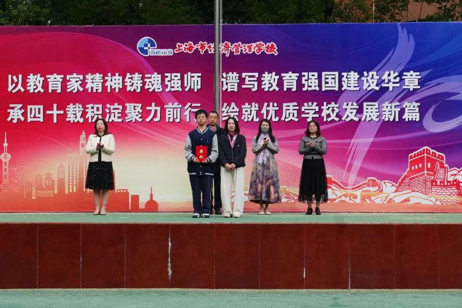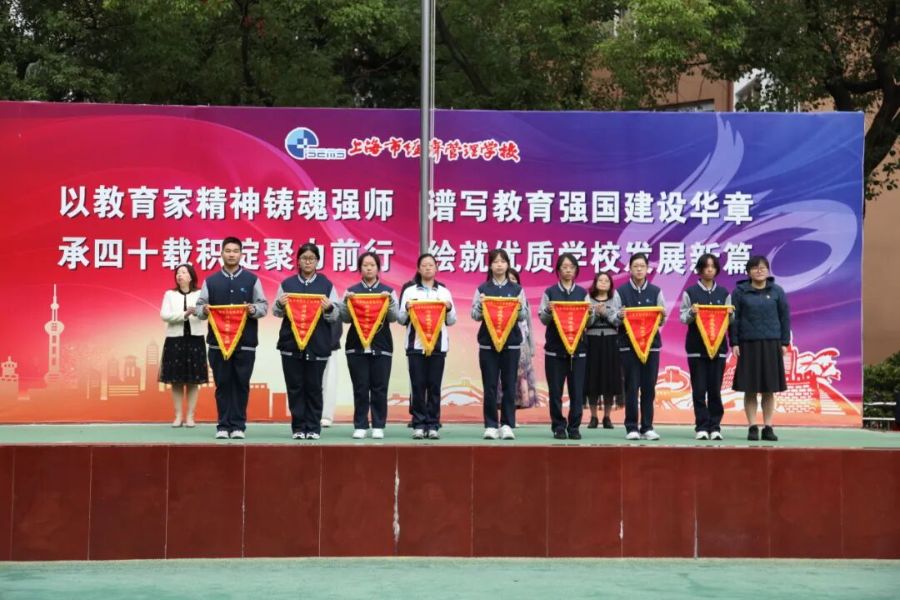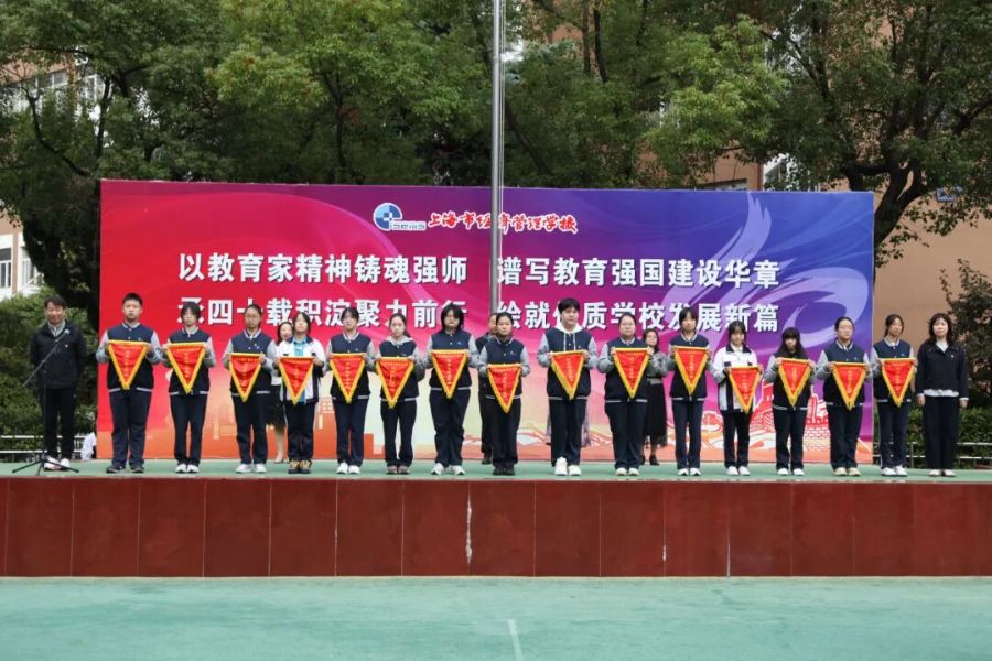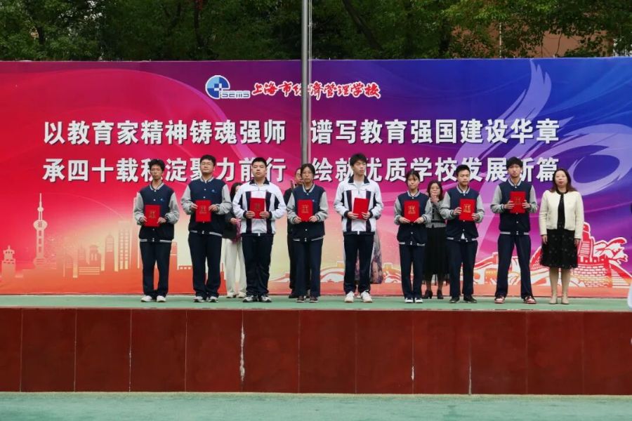 仪式上,学校对各类先进集体与个人进行表彰。2025学年第一学期10月份行为规范示范班、上海市经济管理学校第30届学生田径运动会前八名班级等集体,以及2025年上海市职业院校赓续红色血脉・立志技能报国主题读书大师微讲堂学习活动、2025年上海市小学生爱心暑托班志愿服务等项目中的优秀个人和2025年上海市学生阳光体育大联赛女篮赛事、2025一带一路金砖国家技能大赛获奖师生依次登台领奖,相关领导依次为获奖师生颁发荣誉证书,勉励全体师生以榜样为标杆,汲取奋进力量,在成长道路上勇毅前行