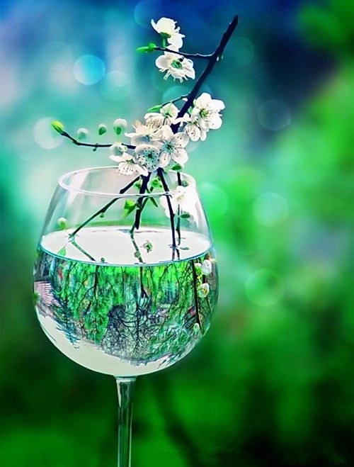 那杯水中的花很美