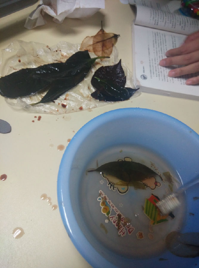 生物课上做叶脉书签什么的简直萌萌哒 虽然最后我连我的手和书都豁出去了 不过应该还不错扒 红色哒是我做的 别的也是萌萌哒 都是我们组的
