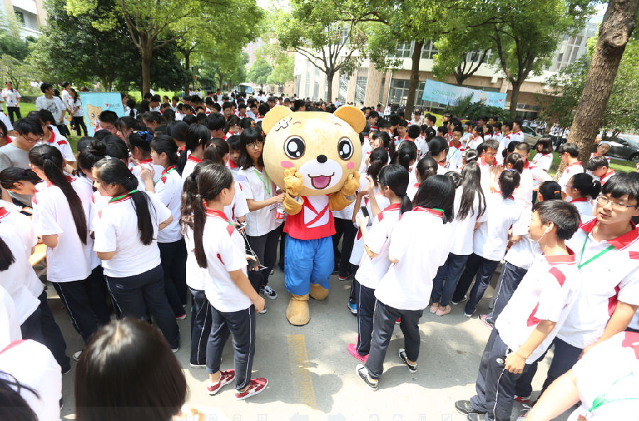 这不,易班留影区前,小伙伴们都来和易班熊合影啦!可爱的易班熊摆出了各种各样的姿势逗乐了同学们,也给了新生们一个“萌萌哒”的惊喜,有了易班熊坐镇,招新区的工作处不断有新生前来报名,有了他们的加入,易班不再“易般”!